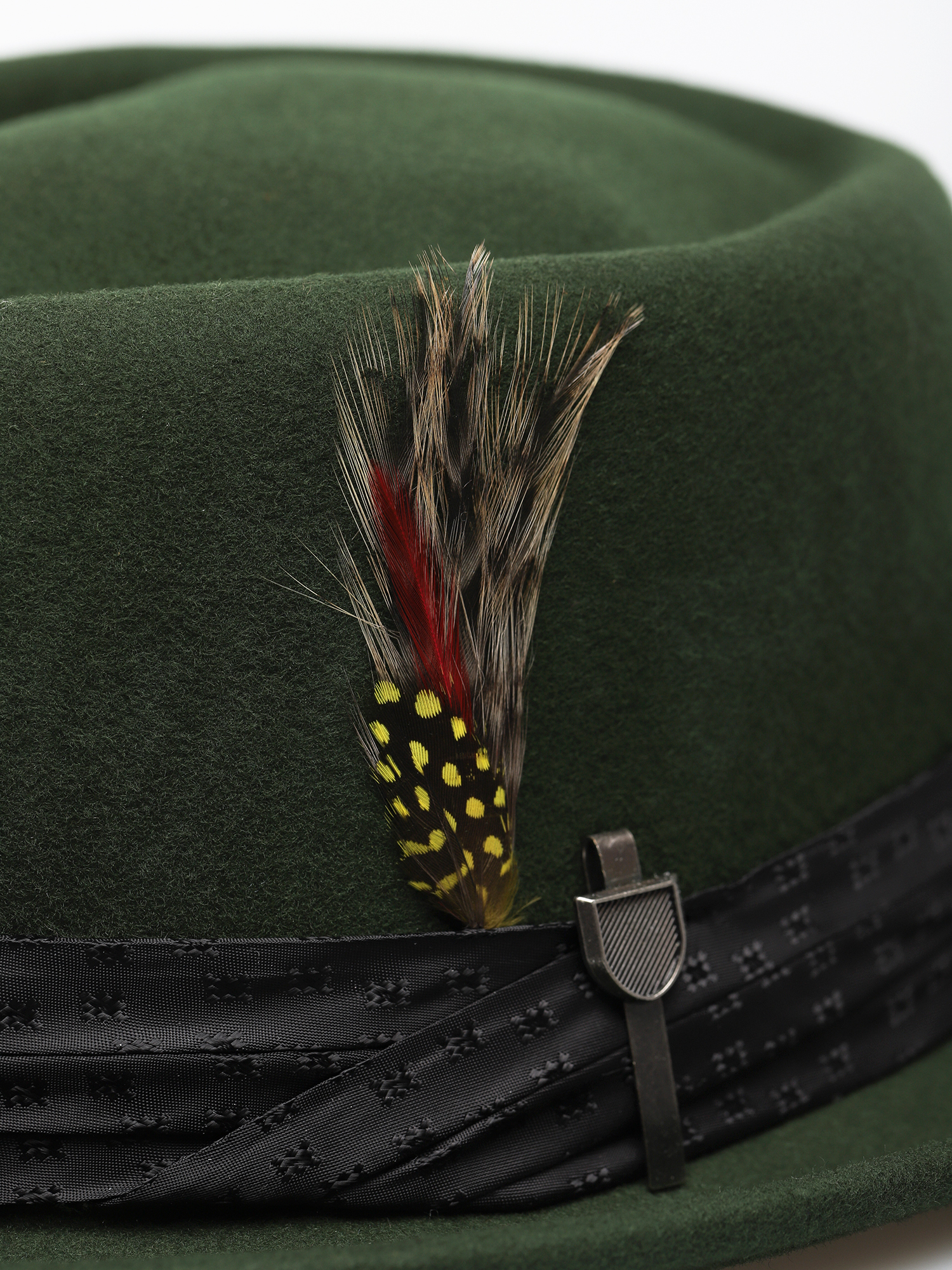 • Brixton Stout Pork Pie to elegancki, filcowy kapelusz o krótkim rondzie przyozdobiony satynową opaską, piórami i metalową spinką z grawerowanym logo Brixton