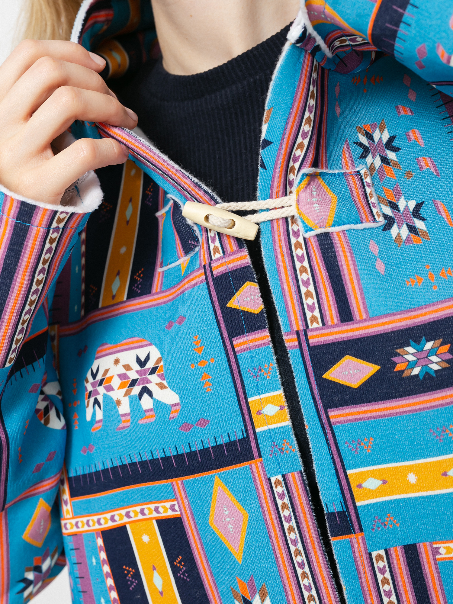 • Zapinana na drewniany guzik