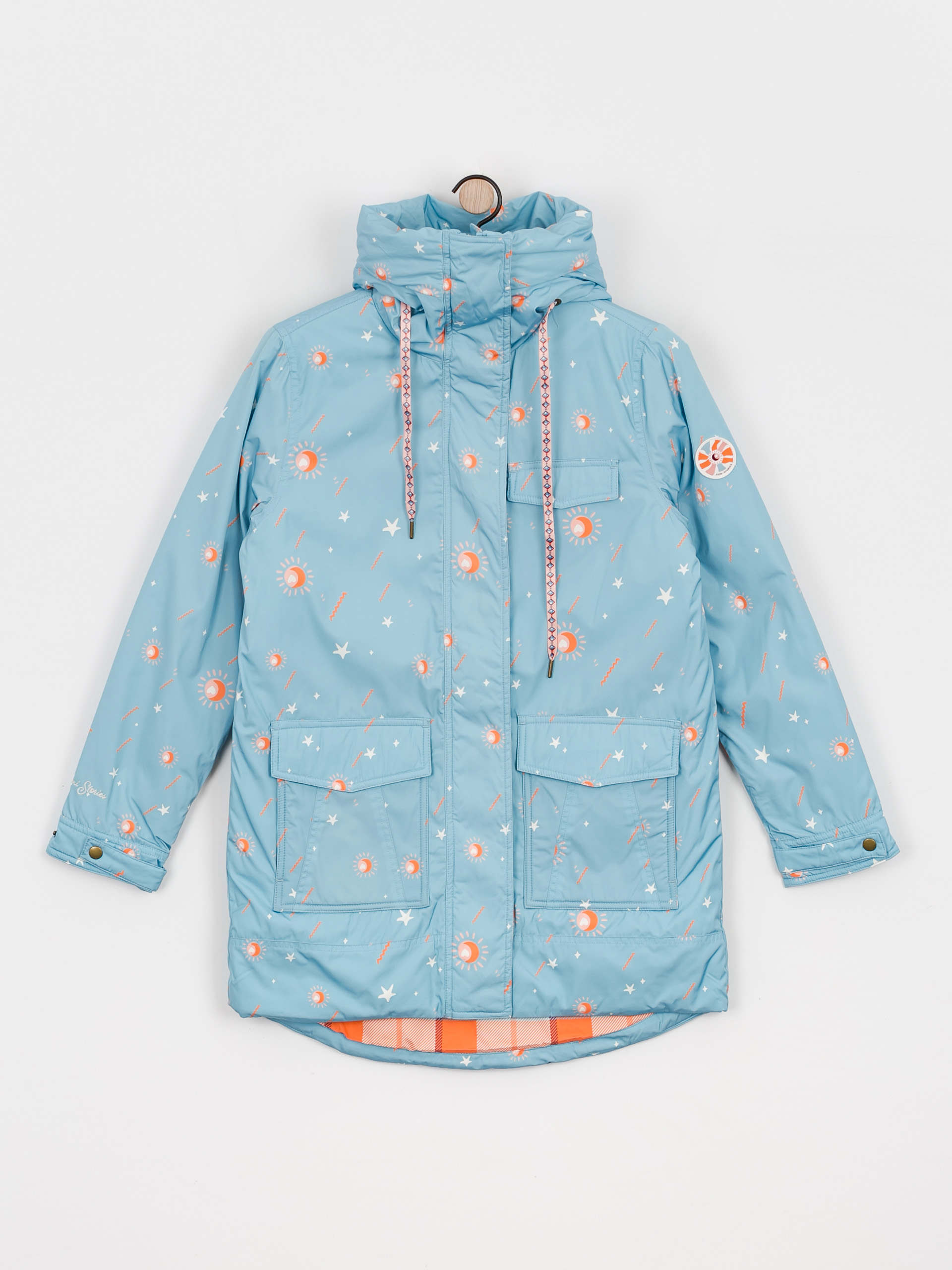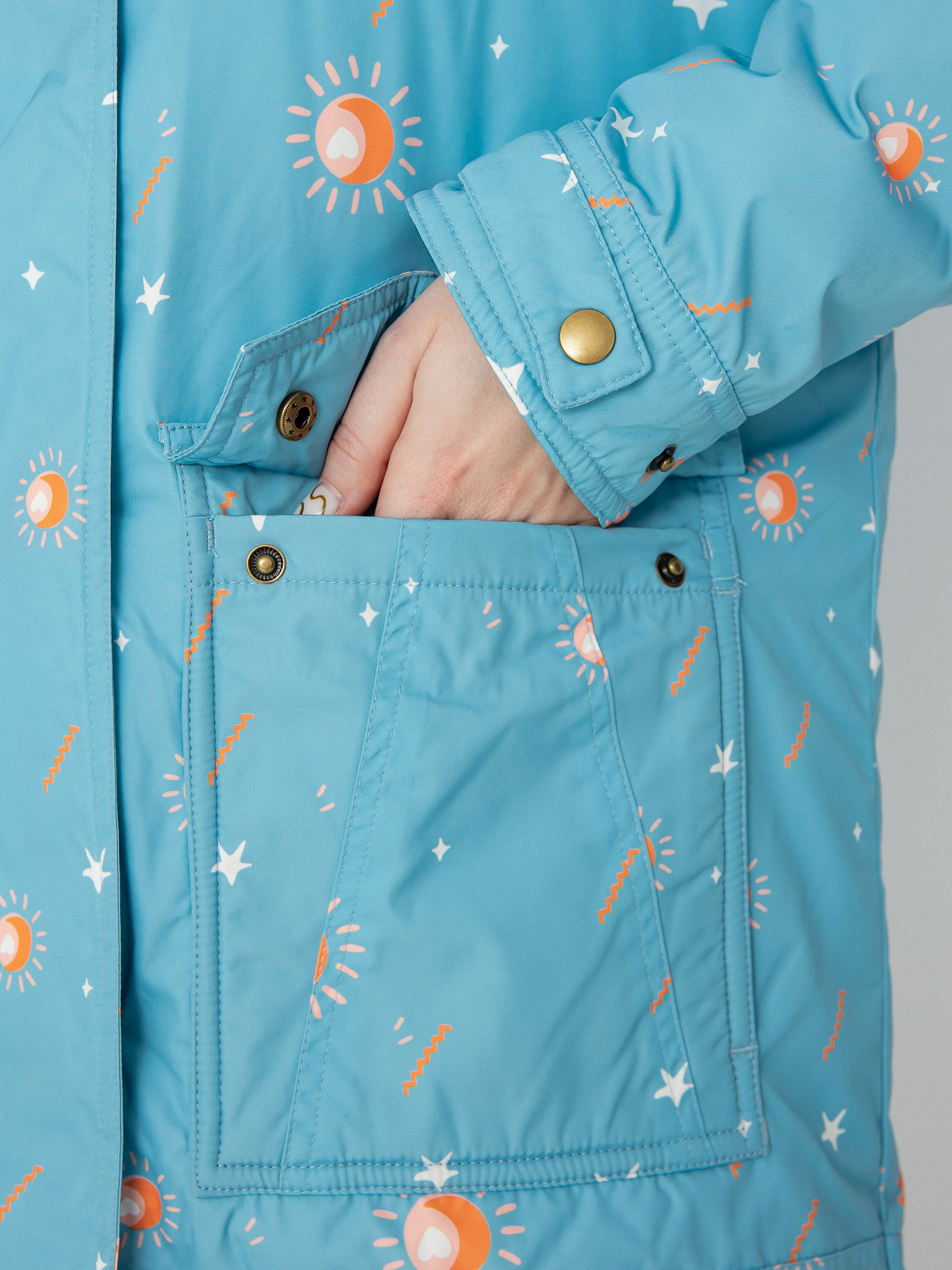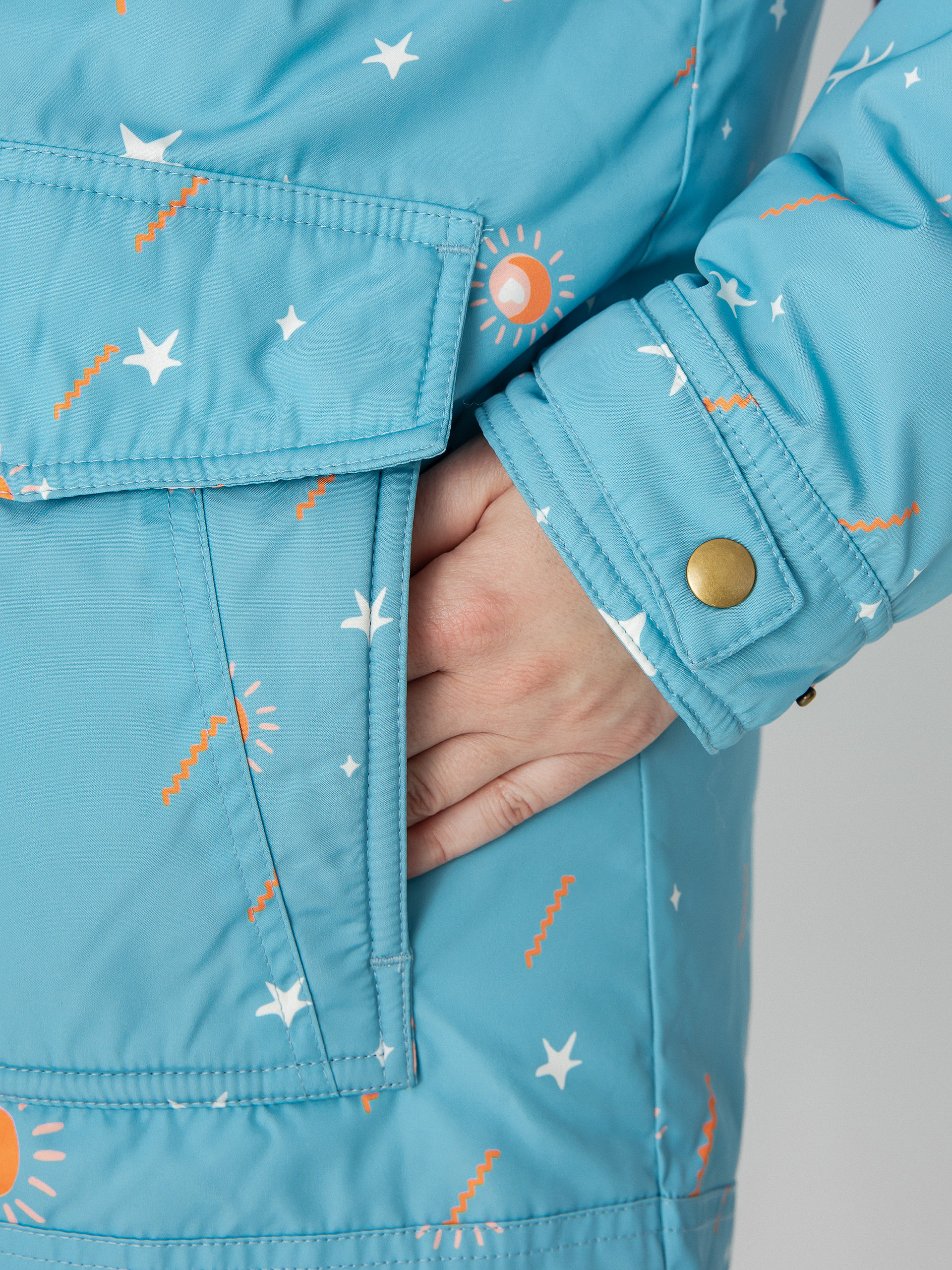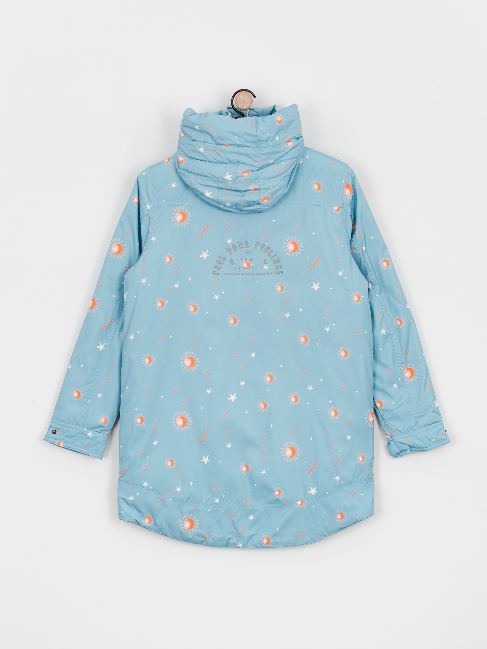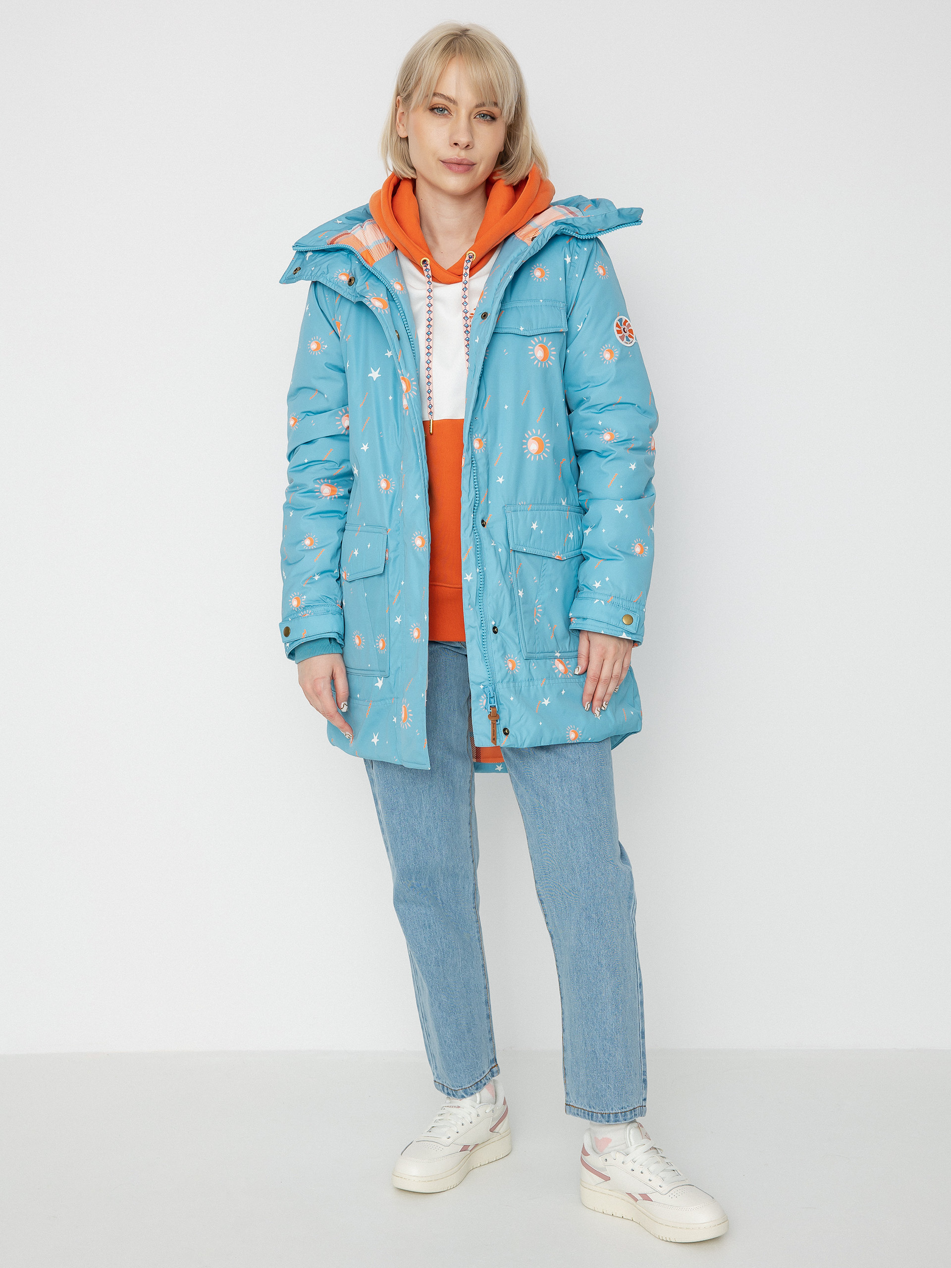 • Kurtka Zino w kolorze niebiańsko niebieskiego nieba, to kolejna wyjątkowa pozycja na liście tegorocznej, jesiennej kolekcji. Wykonana z tkaniny o splocie wodoodpornym. Materiały z której została wykonana pochodzą z recyklingu. Grubość kurtki zapewnia wysoki komfort cieplny, a zdobiona powierzchnia oraz drukowany kaptur, są subtelnym wyrazem azteckiej kapsuły. Długość kurtki sięga połowy uda. Zino posiada także wygodny kaptur, odblaskowy nadruk na plecach oraz zapinane napy, dzięki czemu będziecie mogły schować do kieszeni niezbędne gadżety i wyruszyć na przygodę!